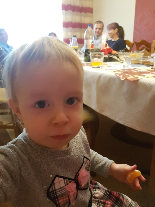 No… ale jak w tym wszystkim odnajduje się Łucja… ano o dziwo nie grymasiła jakoś strasznie w czasie Wigilii 🙂 Nie trzeba było ustanawiać parówek trzynastą potrawą wigilijną. Mały Bzik wcinał barszczyk z uszkami, spróbował trochę zupy rybnej, wszmał pieroga z kapustą, skosztował moczki. Ale chyba najbardziej zajadał się makowcem z mlekiem.