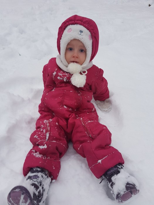 Ten zimowo – świąteczny czas to również hasanie na śniegu. W tym roku prawdziwa zima przyszła dopiero w styczniu. No i była to świetna okazja do zimowych szaleństw. Wprawdzie już w zeszłym roku mieliśmy okazję co nieco zaprzyjaźnić się z zimą, ale na dobrą sprawę Łucyjka była jeszcze na tyle mała, że średnio interesował ją śnieg, święta, prezenty itp. Ale teraz… teraz to już zupełnie inna historia 🙂 Na początku troszkę nieufnie podchodziła do biegania po białym puchu, czy robienia tak zwanych orzełków, ale jak spróbowała… to ciężko było z nią wrócić do domu 🙂 Co więcej można powiedzieć w tym temacie? Najlepiej oddadzą to zdjęcia 🙂