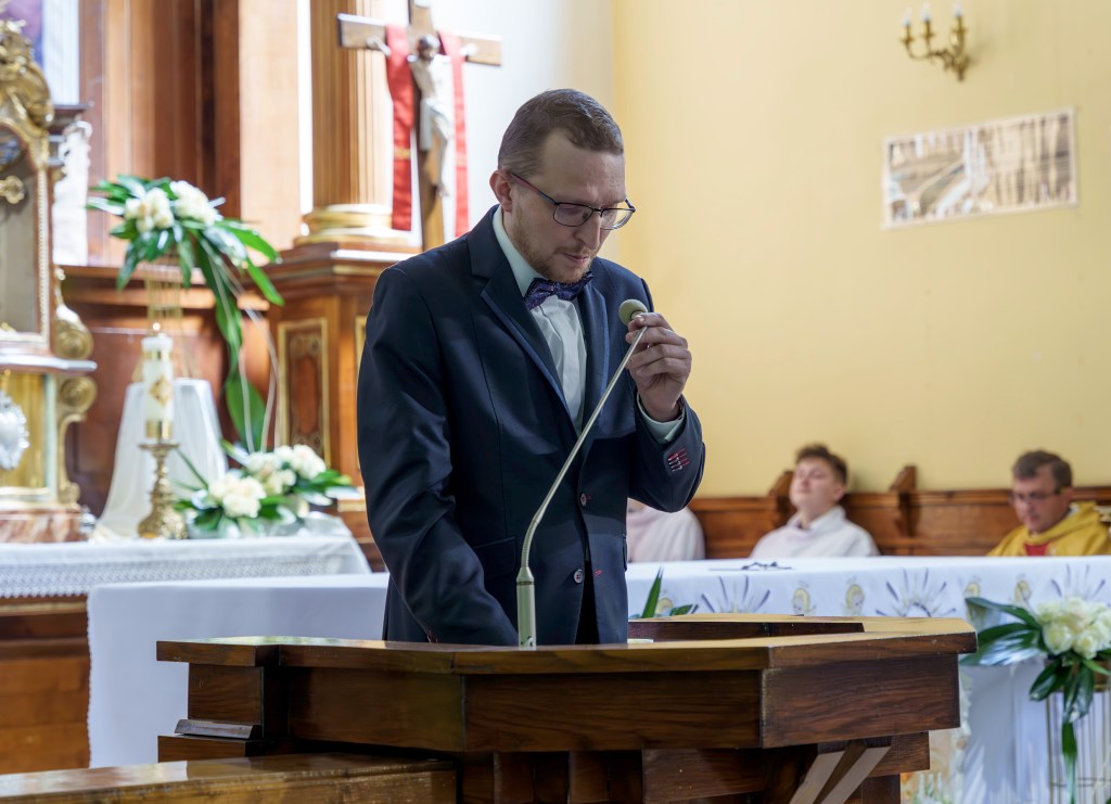 Nasz wikary- ksiądz Wojtek wygłosił homilię na środku kościoła, angażując dzieci w dialog. Siostra katechetka moderowała śpiew popularnych piosenek, a dzieci pokazywały gesty, co stworzyło atmosferę radości i wspólnoty. Ta interaktywność pozwoliła dzieciom aktywnie uczestniczyć w ceremonii, co dodało jej wyjątkowego charakteru.